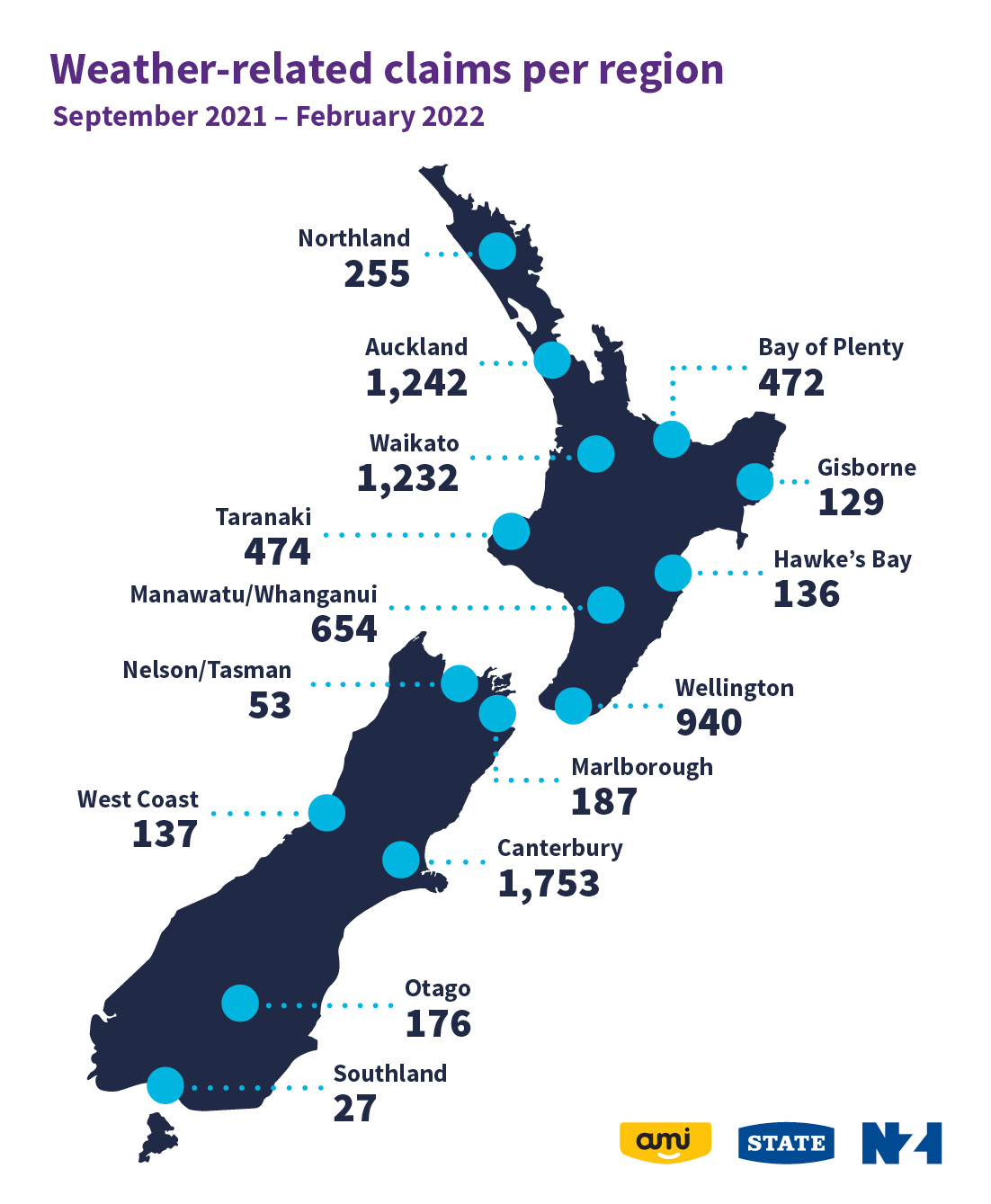 The Wild Weather Tracker shares New Zealand insurance claims statistics and other insights from State, AMI and NZI, and will be released six-monthly.