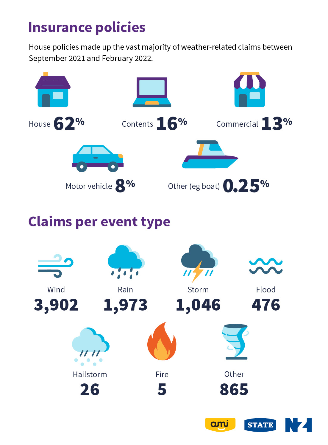“During the last six months alone, AMI, State, and NZI Insurance received over 8,000 claims for property damage caused by severe weather. This is 32% higher than the same period last year.